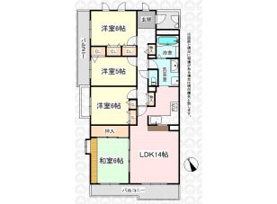 4LDK/主寝室9.1帖+WIC/ペット飼育可(飼育細則あり) /南側バルコニーに付き陽当たり・通風良好