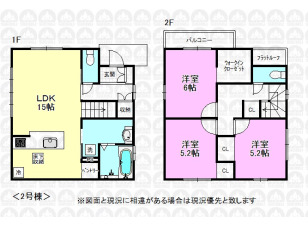 LDK約19.5帖/対面キッチンで開放感/主寝室9帖と大きな寝具も設置可能/カースペース2台(車種による)