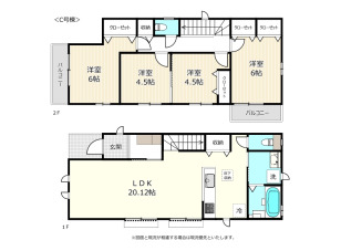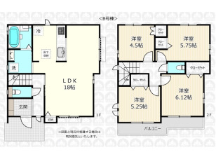 2階リビングの4LDK/対面キッチンのLDKは広々18帖/バルコニー2ヶ所/カースペース1台可