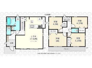 1階に水回りを集約した4LDK/パントリーを備えたLDKは広々17.62帖/2部屋に面したワイドスパンバルコニー
