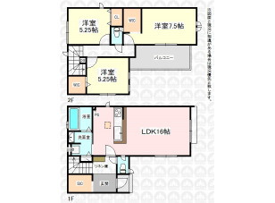 水谷東2丁目の2階建て邸宅です/カースペース1台可(車種による)/2階主寝室7.5帖+WIC付