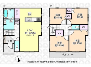 LDK19.75帖/南側5m公道面/カースペース並列2台可/4LDKに間取り変更可能(要費用)/陽当り住環境良好