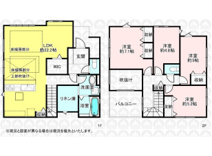 LDK22.7帖大の4LDK間取/カースペース2台(車種による)/南西側公道面/リビングイン階段