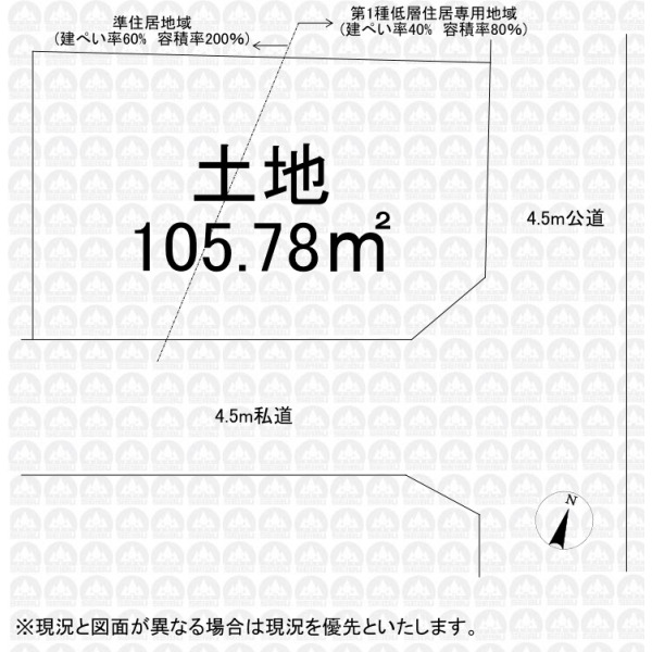 | 接道状況 | 角地 東側4.50m公道 南側4.50m私道 |