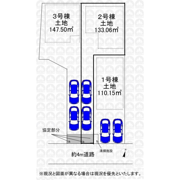 | 備 考 | フラット35をご利用の場合には別途適合証明書取得費用が掛かります/上記土地面積の内、路地状部分約42.8m2を含む/上記土地面積の内、協定部分約4.25m2含む/上記土地面積の他、ゴミ置場持分約0.73m2あり/本地南東側一部第一種低層住居専用地域を含む(建蔽率60%・容積率100%) |