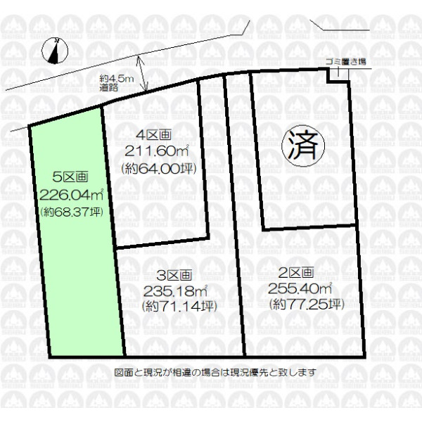 | 備 考 | ゴミ置き場持分約0.43m2有り(各区画2.16m2×1/5ずつ) |