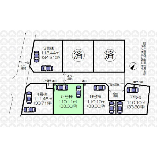 | 備 考 | 引渡しまでに地目を宅地に変更します/ゴミ置場持分0.23m2有り/転回道路持分3.32m2有り/フラット35をご利用の場合は適合証明書申請料が別途必要となります |
