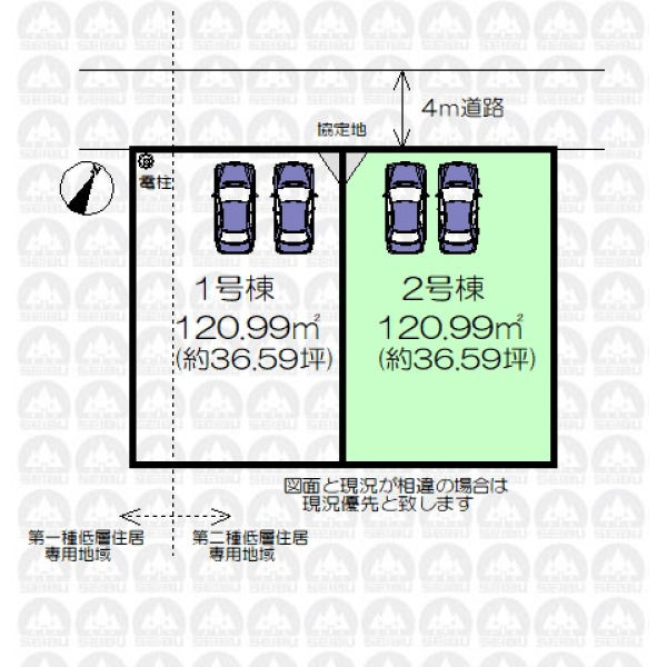 | 備 考 | フラット35を利用する場合は適合証明取得費用が生じます。/1号棟との協定地1.12m2含む(地役権設定予定) |