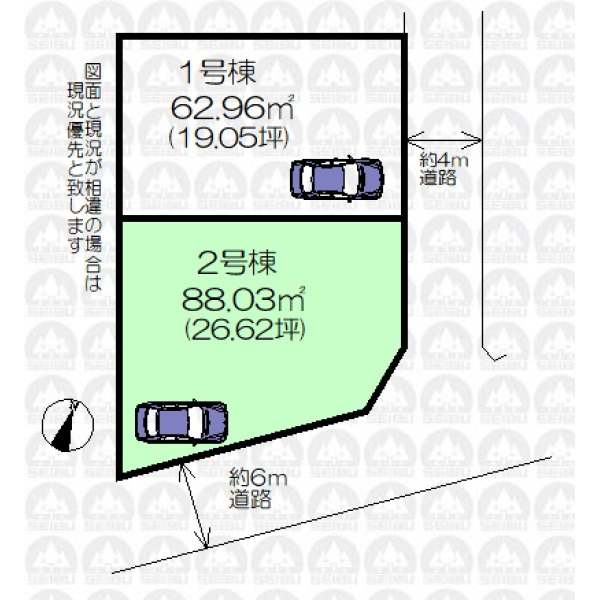 | 接道状況 | 角地 北東側4.00m公道 南東側6.00m公道 |