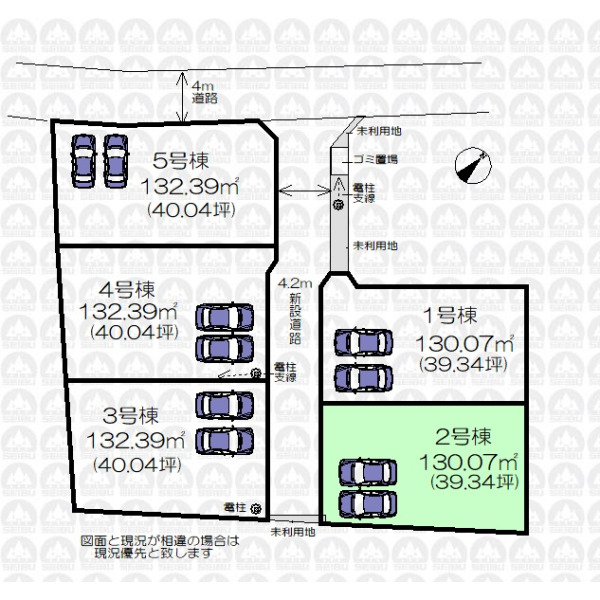 | 備 考 | フラット35ご利用の際は別途適合証明書取得費用が掛かります。/未利用地持分2.17m2、ゴミ置場持分0.5m2あります。 |