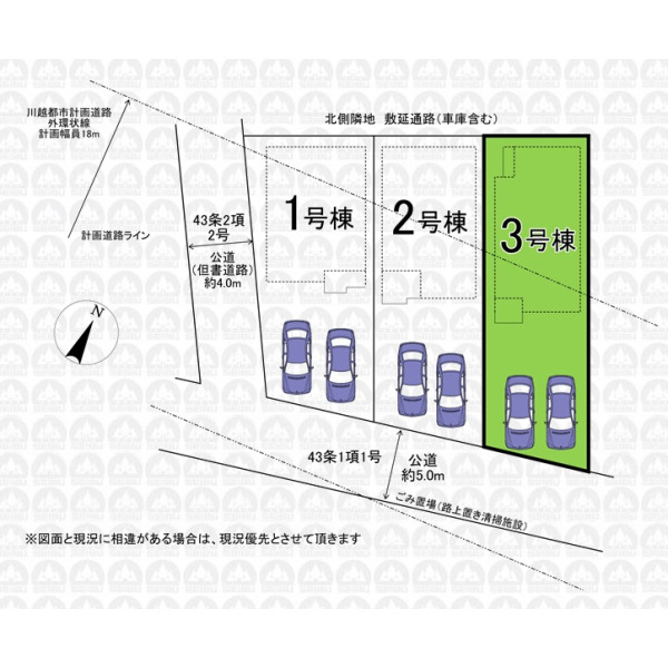 | 備 考 | 建物面積にインナーバルコニー面積6.21m2含みます。/敷地内の一部に計画道路がございます(事業化の見通し無)/周辺環境も合わせてご案内いたします。/「インターネットを見て」とお問い合わせいただくとスムーズにご案内できます。まずはお電話をお願い致します。 |
