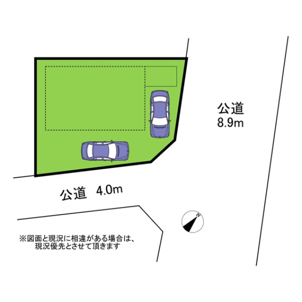 | 接道状況 | 角地 北東側8.90m公道 南東側4.00m公道 |