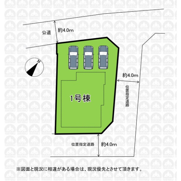 | 接道状況 | 三方 北西側4.00m公道 北東側4.00m私道 南東側4.00m私道 |