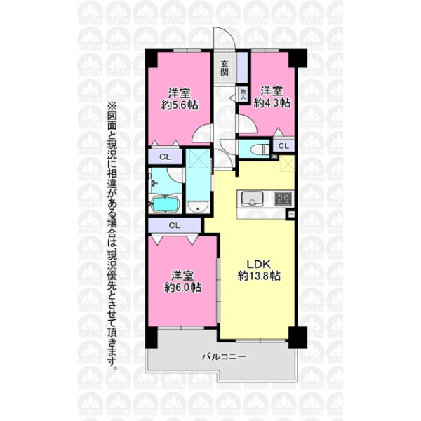 | 専有面積 | 63.47m²(壁芯) | 間取り | 3LDK |