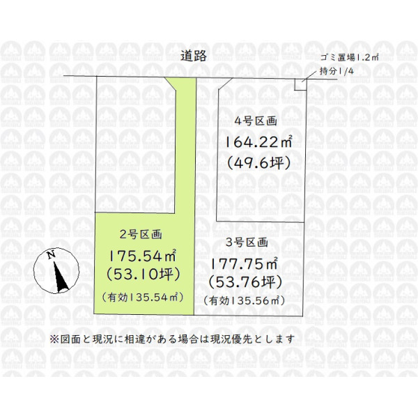 | 土地面積 | 175.54m²(実測) /53.1坪 | 土地権利 | 所有権 |