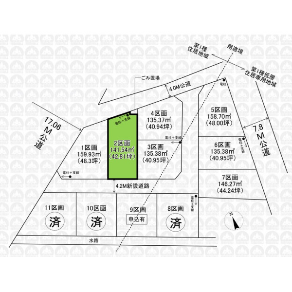 | 土地面積 | 141.54m²(公簿) /42.8坪 | 土地権利 | 所有権 |