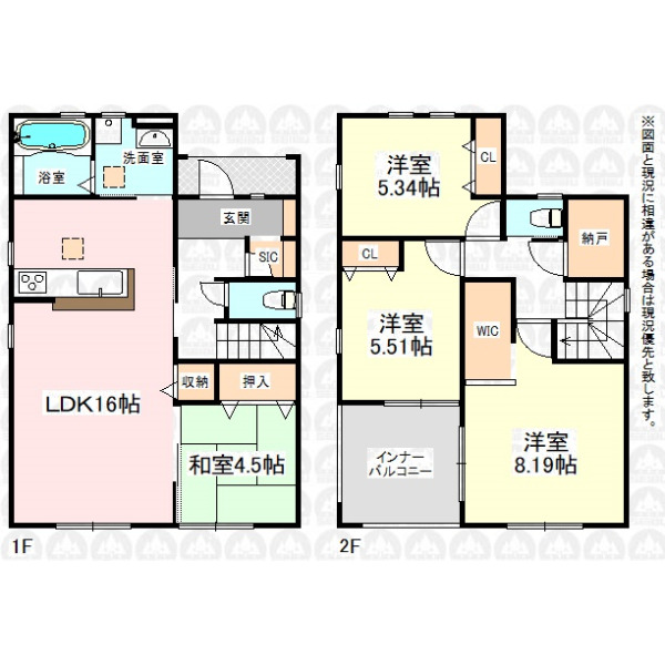 備 考 | 建物面積105.98m2にインナーバルコニー面積7.45m2含む。 |