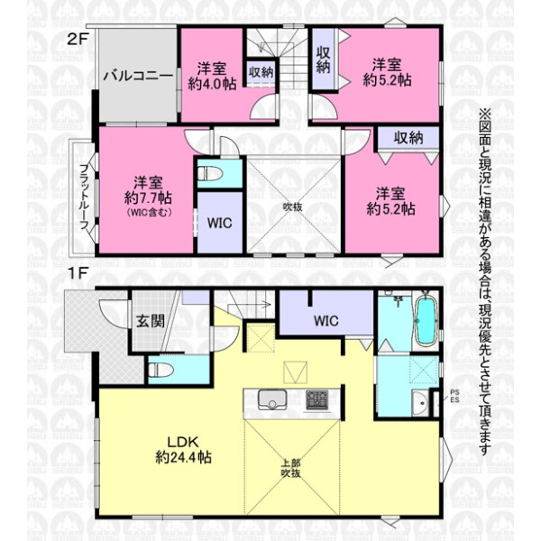 - 全2棟/敷地面積48坪/建物面積32坪/南西道路につき陽当良好/吹き抜け有/WIC2カ所有/広々リビング24.4帖