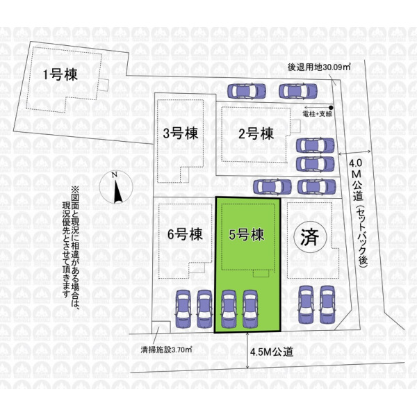 | 備 考 | 引渡時迄に地目を宅地へ変更致します。/22条区域/文化財保護法(埋蔵文化財)/農地法/景観法/清掃施設持分0.62m2有。/可変型間仕切り洋室を将来2部屋として利用の場合、間仕切壁工事は有償となります。/セットバック部分は市に採納予定です。 |