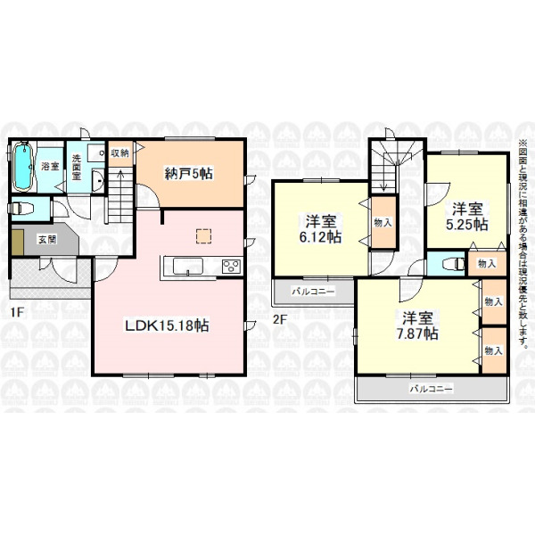 備 考 | LDKは広々15.18帖/1階に便利な納戸5帖あり/バルコニー2ヶ所/住宅性能評価書を取得。安全安心の家は家族の大切な暮らしを守ります/フラット35をご利用の場合、別途適合証明書取得費用がかかります。/周辺環境も合わせてご案内いたします。/まずはお電話をお願い致します。 |