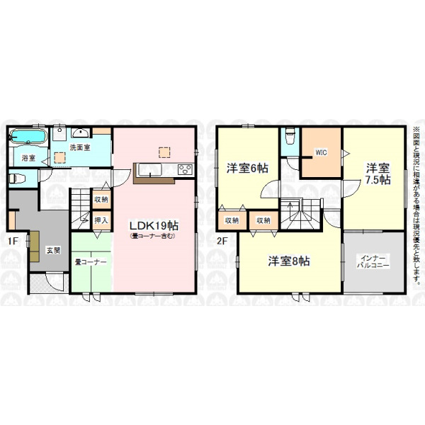 | 備 考 | 長期優良住宅/LDKは広々19帖です(畳コーナー含む)/2階主寝室7.5帖+WIC付/建物面積にインナーバルコニー面積約7.2m2含む/引き渡しまでに売主負担にて地目を宅地に変更します/フラット35利用の場合は適合証明書発行手数料がかかります/周辺環境も合わせてご案内いたします。/「インターネットを見て」とお問い合わせいただくとスムーズにご案内できます。まずはお電話をお願い致します。 |