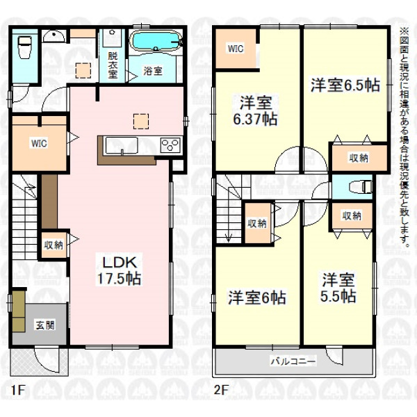 | 備 考 | 長期優良住宅/LDKは広々17.5帖です/2階主寝室6.37帖+WIC付/ワイドバルコニー/引き渡しまでに売主負担にて地目を宅地に変更します/フラット35利用の場合は適合証明書発行手数料がかかります/周辺環境も合わせてご案内いたします。/「インターネットを見て」とお問い合わせいただくとスムーズにご案内できます。まずはお電話をお願い致します。 |