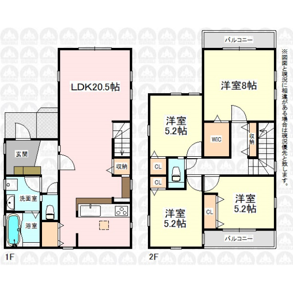 | 備 考 | LDKはゆとりある20.5帖/2階主寝室8帖+WIC付/バルコニー2ヶ所あり/ゴミ置場持分2.54m2×1/8/フラット35をご利用の場合、別途適合証明書取得費用がかかります。/周辺環境も合わせてご案内いたします。/「インターネットを見て」とお問い合わせいただくとスムーズにご案内できます。まずはお電話をお願い致します。 |