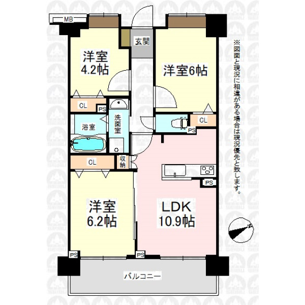 専有面積 | 59.00m²(壁芯) | 間取り | 3LDK |