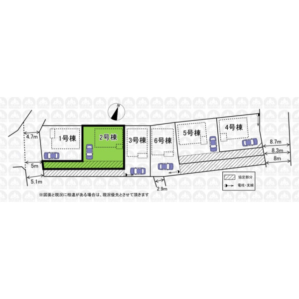 | 備 考 | 建物面積96.78m2の他、バルコニー面積8.51m2有/敷地面積に協定通路部分約63.80m2含む/フラット35の適合証明は別途費用がかかります |