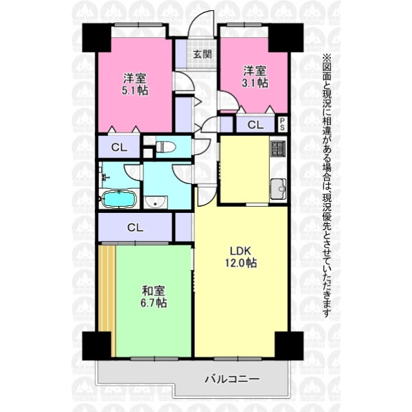 | 専有面積 | 71.12m²(壁芯) | 間取り | 3LDK |