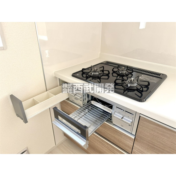 | 設 備 | 東京電力/公営水道/都市ガス/下水/対面キッチン/追い焚き/シャンプードレッサー/浴室換気乾燥機/ウォシュレット/システムキッチン/食器洗浄乾燥器/浄水器/床下収納/ウォークインクローゼット/フローリング/クローゼット/バリアフリー/制震構造/耐震構造/長期優良住宅 | ||