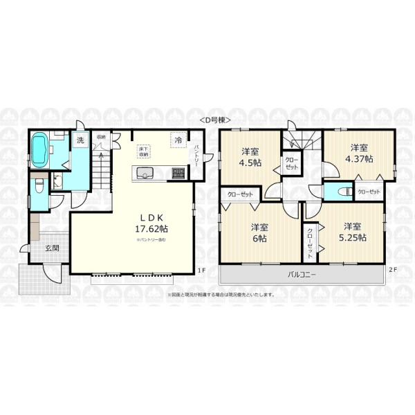- 1階に水回りを集約した4LDK/パントリーを備えたLDKは広々17.62帖/2部屋に面したワイドスパンバルコニー