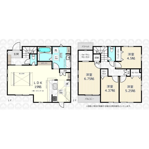 - 対面キッチンのLDKはカウンター付で広々19帖/全居室収納付き+WICで収納豊富/カースペース2台可能な整形地