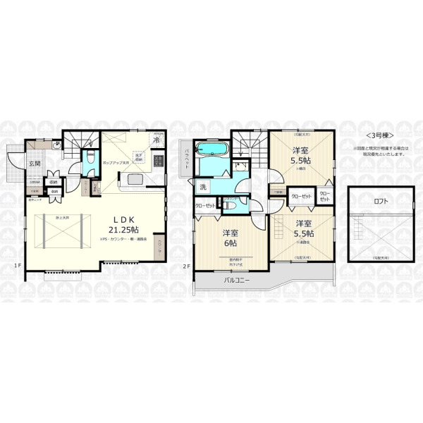 - LDKは広々21.25帖/全居室収納付き+土間収納+ロフトで収納豊富/南道路に面した整形地/カースペース2台可