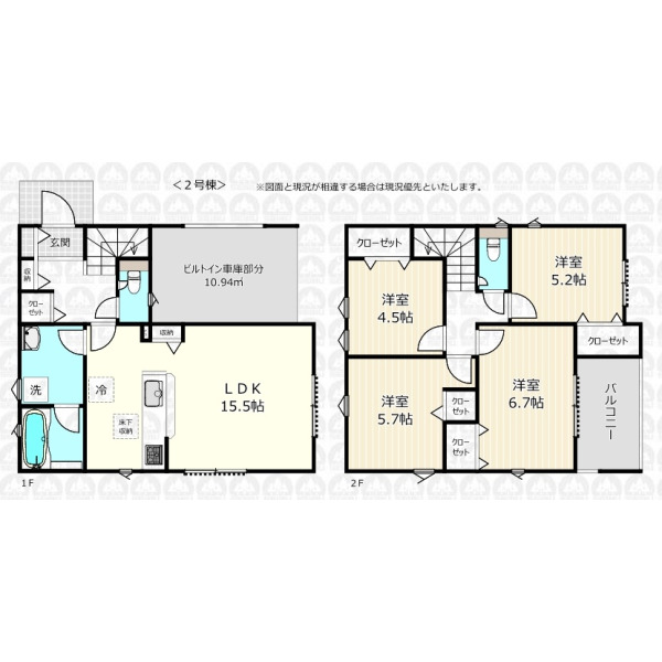 - 1階に水回りを集約した4LDK/全居室収納付き+玄関収納で収納豊富/カースペース1台可