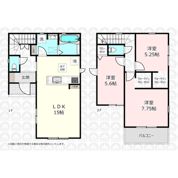 - 1階に水回りを集約した3LDK/WIC2ヶ所で収納豊富/主寝室7.75帖/ワイドバルコニー/南東道路面