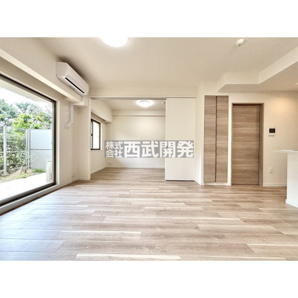 - LDK隣接の洋室を開放すると約20.5帖の大空間/南東側専用庭付の1階住戸/ペットと暮らせる新規リフォーム物件