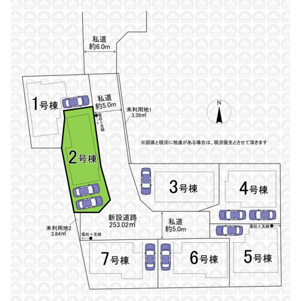 - 全7棟現場/便利な2路線2駅利用可/全居室二面採光の3LDK/主寝室7.5帖/カースペース並列2台可