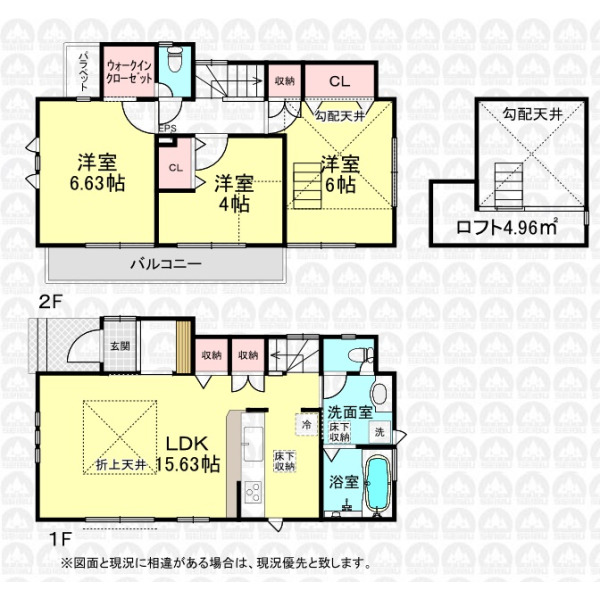 - ロフト付きの3LDK/カースペース1台可/リビングイン階段/ウォークインクローゼット付き