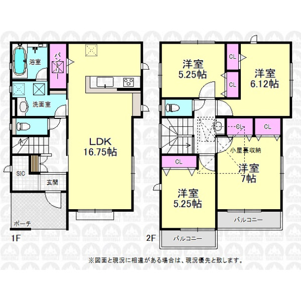 - 全10棟現場/カースペース2台可(車種による)/全居室二面採光の4LDK/バルコニー2ヶ所/小屋裏収納付き