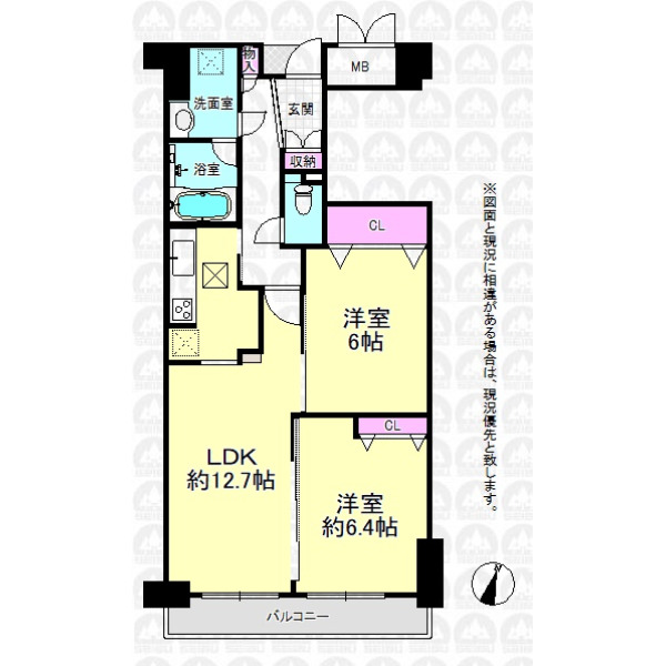 | 専有面積 | 57.68m²(壁芯) | 間取り | 2LDK |