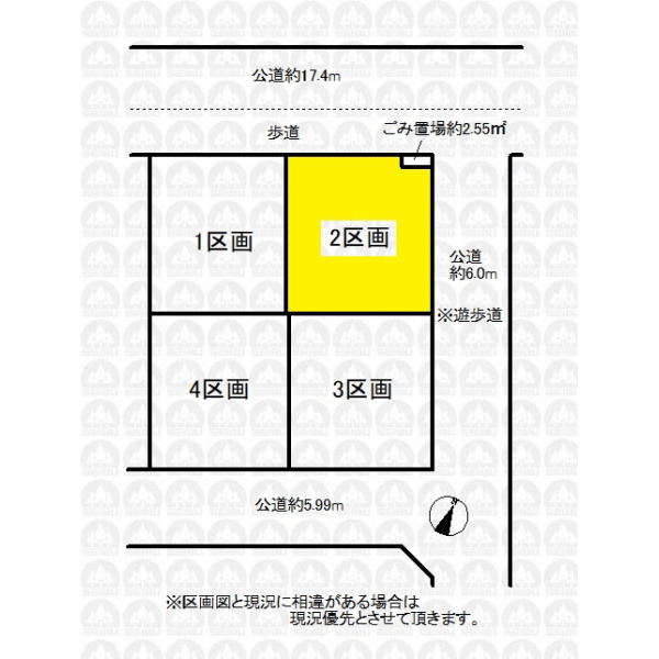 | 接道状況 | 角地 北西側17.40m公道 北東側6.00m公道 |