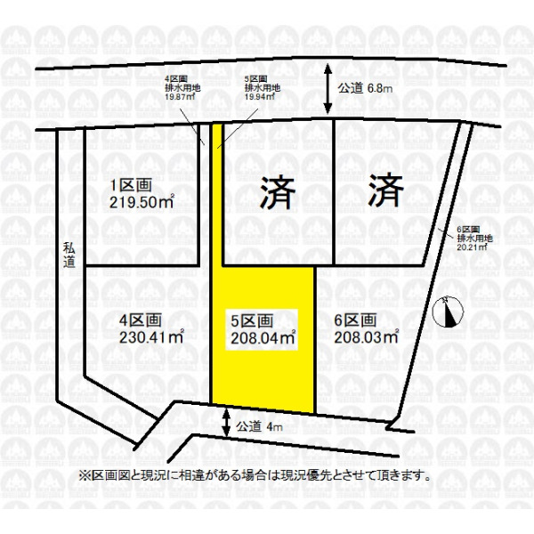 | 備 考 | 線引き前宅地(川越市条例第4条第8号)/土地208.04m2(排水用地19.94m2含む) |