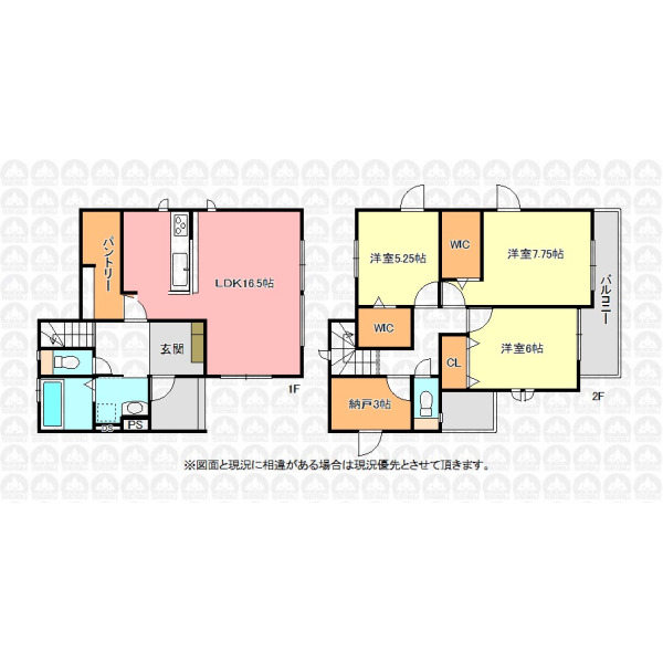 - カウンター付パントリーのある3SLDK/WIC2ヶ所で収納豊富/カースペース2台可(車種による)/3帖の納戸有