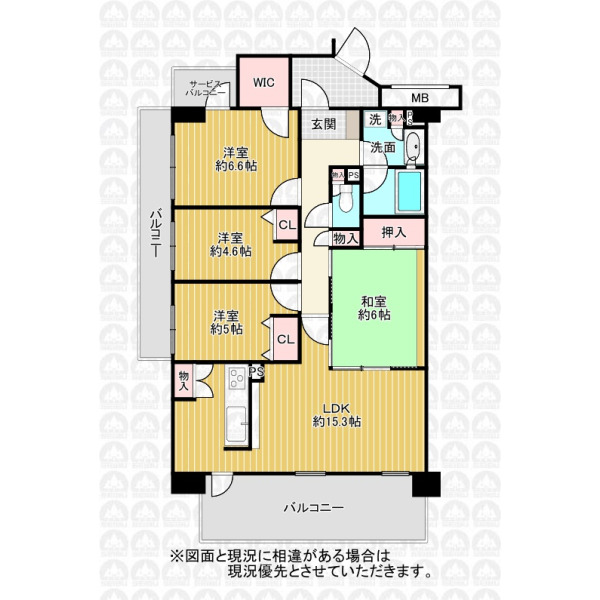 - 対面キッチンLDK15.3帖/ペット飼育可(規則有)/2面バルコニー/角部屋/日当り良好/4LDK