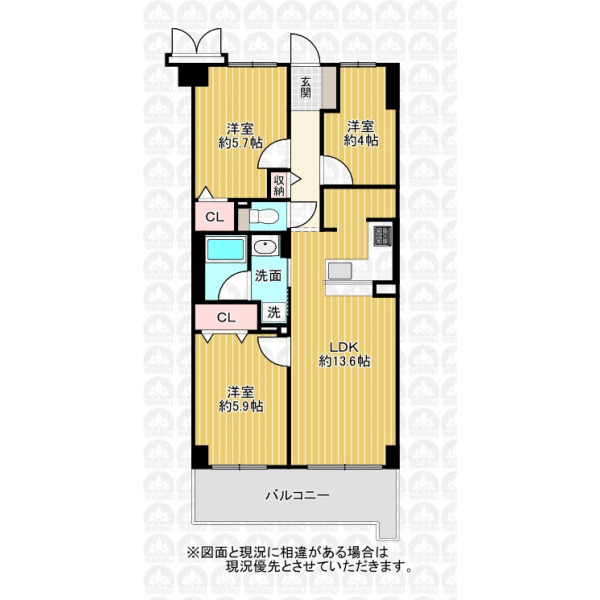 | 専有面積 | 64.96m²(壁芯) | 間取り | 3LDK |