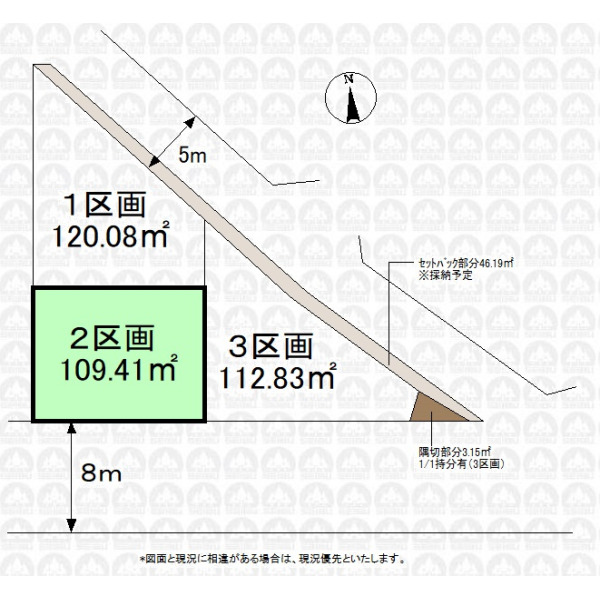 - 土地約33.09坪/南道路につき陽当たり良好/前面道路幅員8m/整形地