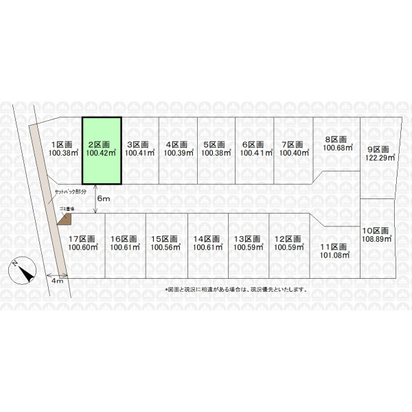 | 備 考 | 引渡時までに地目を宅地に変更します/ごみ置場持分0.29m2有/景観法/法22条区域/宅地造成及び特定盛土等規制法 |