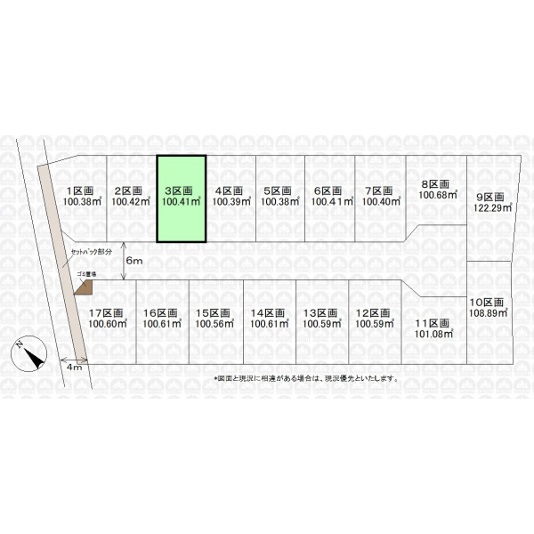 | 備 考 | 引渡時までに地目を宅地に変更します/ごみ置場持分0.29m2有/景観法/法22条区域/宅地造成及び特定盛土等規制法 |