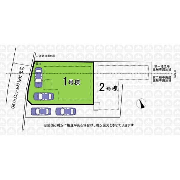 備 考 | フラット35利用の場合は適合証明書発行手数料がかかります/本地北側一部が第一種低層住居専用地域(建ペイ率40%・容積率80%)です/カースペース2台は車種によります/井戸埋め戻し済み |